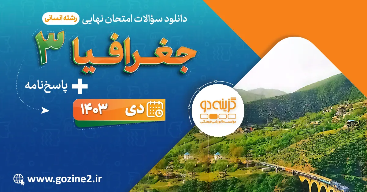 امتحان نهایی جغرافیا 3 رشته علوم انسانی به صورت کتبی و از کل کتاب در قالب 20 نمره می باشد.…